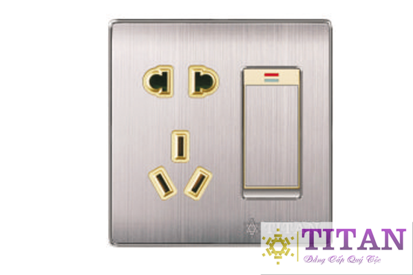 Mặt 1 ổ 2 – 1 ổ 3 chéo – 1 công tắc 2 chiều Titan