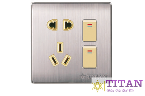 Mặt 1 ổ 2 – 1 ổ 3 chéo – 2 công tắc 1 chiều Titan