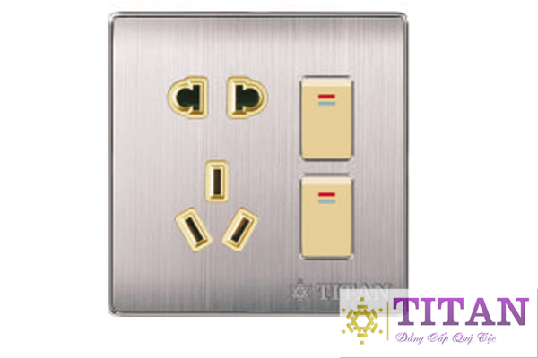 Mặt 1 ổ 2 – 1 ổ 3 chéo – 2 công tắc 2 chiều Titan